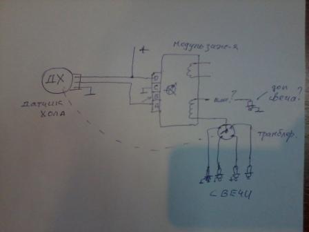 Вот схемка (упрощенная) использования одного канала модуля зажигания в БСЗ вместо коммутатора и катушки, а вопрос в предыдущем сообщении. Хорошо разбирающихся в электричестве прошу помочь.