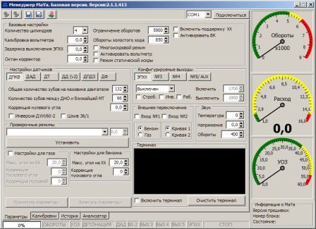Это было, когда еще 413 версия менеджера обсуждалась, кстати, в моем сообщении от 10 августа скрин именно 413. Почему спрашиваю? - проблемы с вольтметром, стрелочный прибор показывает через раз, а в окошке "калибровка вольтметра" стрелочками значение больше 10 не выставляется, а если цифры (например 12) вбить, потом они все равно возвращаются к 10. И еще, что дает установка галки "работа" в "конфигурируемых выходах"? И еще, например, хочу настроить выход по достижению 500 оборотов после включения зажигания, т.е. с 0 оборотов. Начинаю вбивать цифры, в результате получается в графах "включить" и "выключить" автоматически устанавливается одна и та-же цифра (500). Понимаю, что это порог срабатывания, но непонятно, как ведет себя выход, - подаст напряжение в этот момент или отключит? Если сильно логически подумать, то можно рассудить так - галка "работа" - при включении зажигания напряжение есть, при достижении порога - отключается. А галка "инверсия" - все наоборот. Кто сталкивался, подскажите. Еще, галка "включить терминал" не влияет на возможность записи настроек в блок и, наоборот, из блока в менеджер?, она просто показывает, что идет обмен данными блока с менеджером. Но тогда что дает "очистить терминал"? И еще, для чего нижняя строка синим шрифтом - "обороты.....стоп", она у меня никак не реагирует.